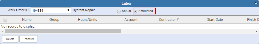 IMPORTANT: Estimated labor cannot be transferred to Actual if the work order Stage is set to Proposed.