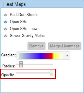 3. Slide the Opacity bar to the left to make the heat map more opaque, or to the right to make it less opaque.