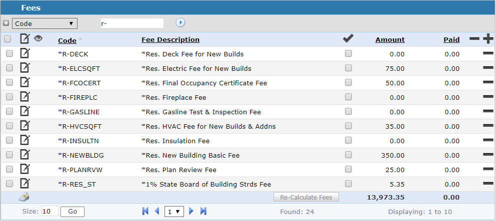 You can search for fees using the Fees panel on the summary page or on the Payment tab of the payment manager window.