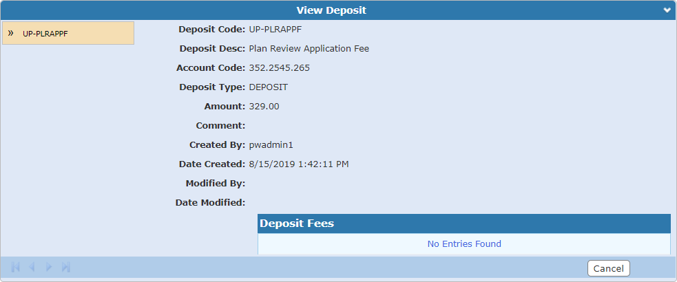 The View Deposit panel opens.