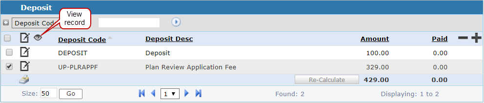 1. Select the record(s) and click View record on the Deposit panel.