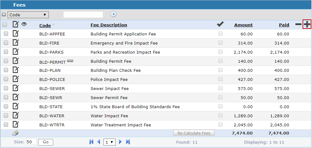 1. Select the check box(es) next to the fee(s) you wish to add.