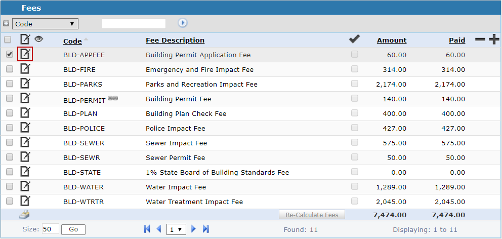 Edit a Fee