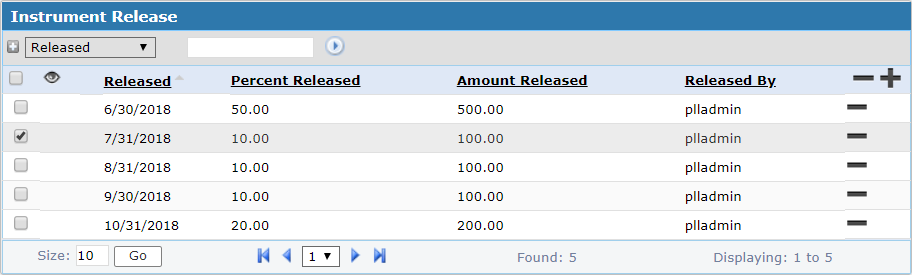 As stages of the case are completed, the organization can release part or all of the instrument from the Instrument Release section.