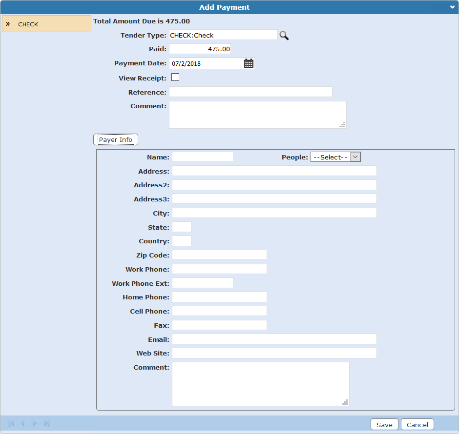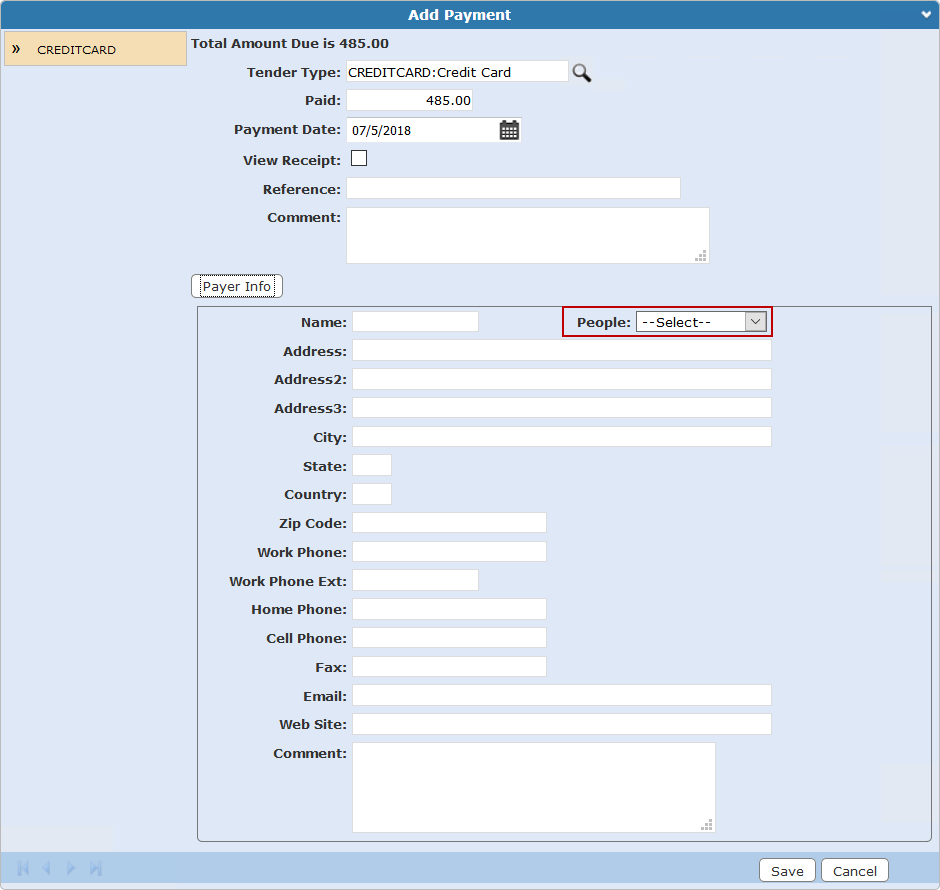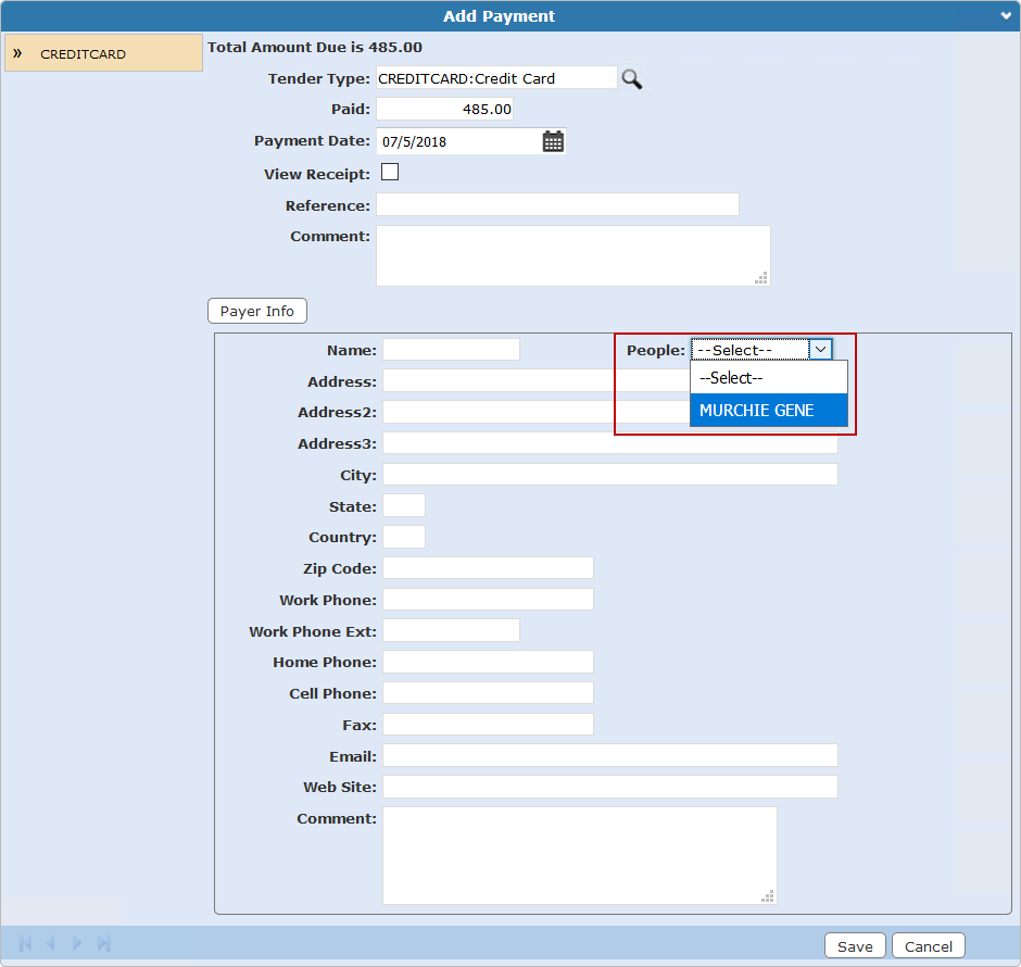 You can add who made the payment on fees or deposits manually or use the People drop-down list.